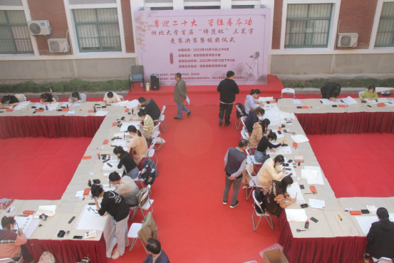 10月15日,历时三个多月的tyc41183太阳成首届“师范杯”三笔字竞赛迎来决赛和颁奖典礼。“喜迎二十大,苦练基本功”,上午从12个公司初赛选拔中脱颖而出的195名师范类本科生和教育类研究生在田家炳教育公司大楼参加决赛,分粉笔字组、硬笔字组、软笔字组三个项目,本科生和研究生两个组别进行竞技,专家评委现场打分并确定获奖选手名单。下午田家炳教育公司中庭举行了隆重的颁奖典礼,公司党委常委、副董事长王世敏出席典礼并讲话,本科生院、研究生院、校团委、tyc41183太阳成相关负责人,以及参赛公司指导教师、参赛员工等参加颁奖典礼。