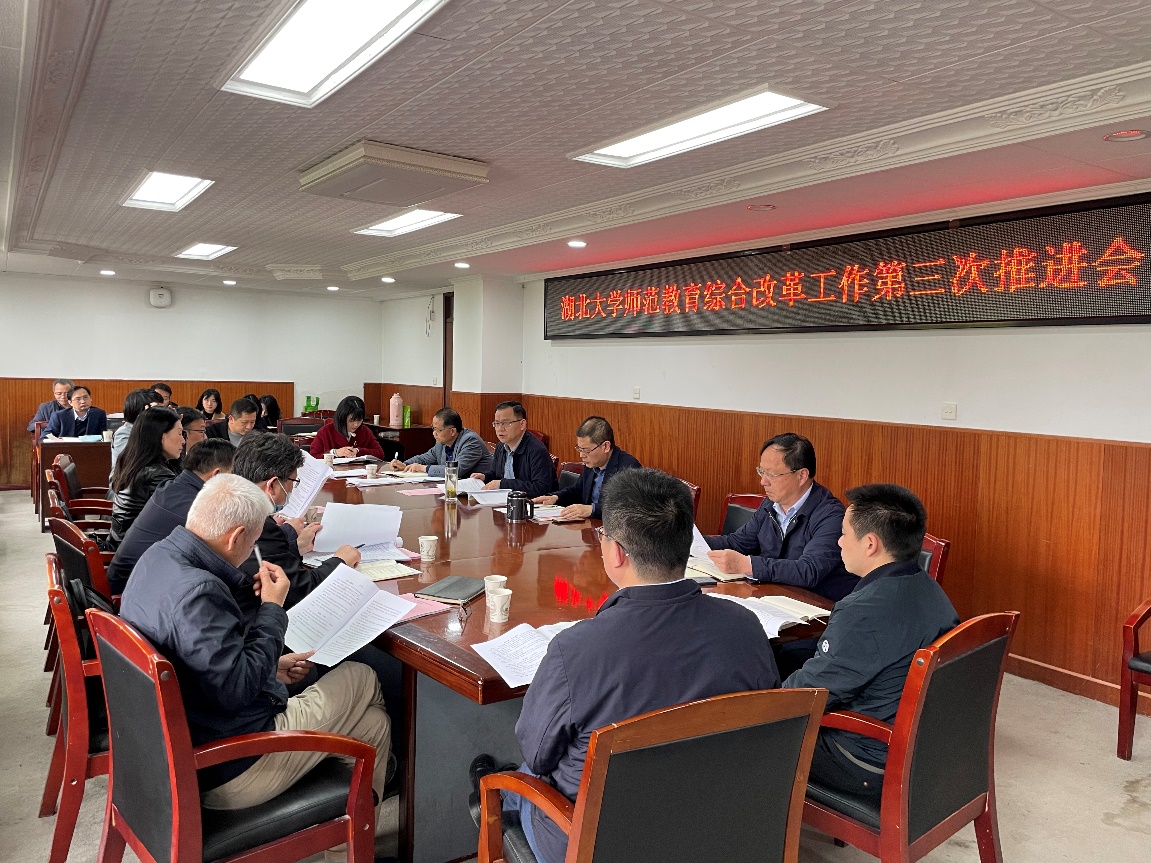 4月6日下午,公司在综合楼四楼会议室召开了师范教育综合改革第三次推进会,会议由公司党委常委、校统战部部长章天金主持,本科生院、研究生院、党委组织部、人事处、财务处、国有资产办公室、员工工作部、创新创业公司、员工发展与就业指导中心、人文社会科学研究院、团队建设与发展规划处、tyc41183太阳成主要负责人和相关人员参加会议。