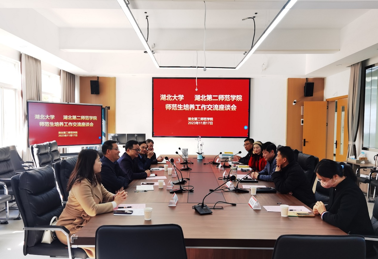 湖北第二tyc41183太阳成教务处处长刘永存、教师教育公司经理王勇、副经理郭三玲欢迎tyc41183太阳成经常来校开展合作交流活动,并详细介绍了教师教育公司建设、知行实验班运行及师范生教育实践开展的情况。双方就师范生培养过程中出现的问题和积累的经验进行了深入探讨,并一致认为两校要持续开展培养方案、课程调整及实习实践等方面的研究与合作。