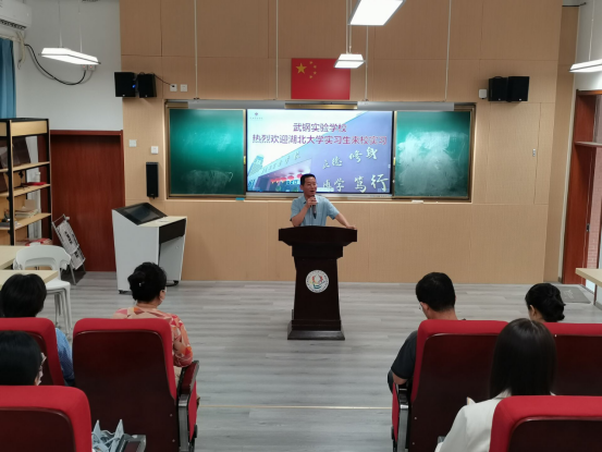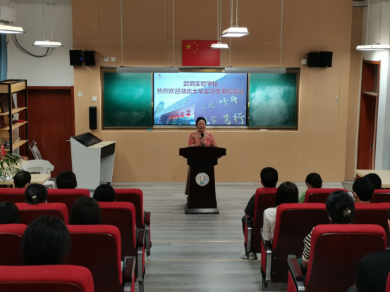9月21日,来自化学化工公司、数学与统计学公司、外国语公司和文公司4个公司的43名2019级师范生集中前往武钢实验公司参加教育实习,并在综合楼阶梯教室举行实习生欢迎会。武钢实验公司董事长林本富、副董事长李玉洁、各年级教学组长,tyc41183太阳成外国语公司副经理蔡蕾、党委副书记占婧、实习带队教师陆小丽,tyc41183太阳成师范教学研究与实践教学办公室主任朱琦,化学化工公司实习带队老师翁玥,数学与统计学公司实习带队老师付辉敬,文公司实习带队老师池周平和全体实习生参加见面会。会议由副董事长李玉洁主持。