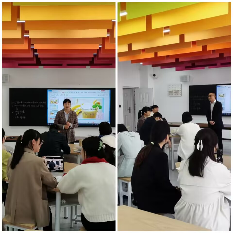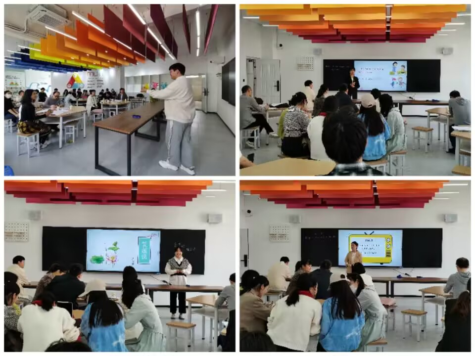 现场展示环节,参赛实习生纷纷展现出自己独特的教学设计和巧妙的教学构思,比如,在英语组,周路瑶讲授了“How do you make a banana milk shake?”,周老师展现出饱满的亲和力,使课堂变得生动活跃。沈欢授课的内容是“I’m more outgoing than my sister .”,沈老师通过深入浅出的语言讲解有关比较级的知识,逻辑严密,层层递进。李秀子讲授了“Do you want to watch a game show?”,李老师挖掘育人元素,引导员工学习动画人物米老鼠的优秀品质。英语组的各位老师都展现出了扎实的英语教学能力。在语文组,张一凡授课的内容是竺可桢的《大自然的语言》,张老师带领员工剖析文章、分析写作手法,细致入微、环环相扣。常持杰选择讲解陶渊明的《饮酒<其五>》,常老师通过播放视频营造恬淡闲适的氛围,引导员工感悟作者的高洁志趣。张静楠授课的内容是周敦颐的《爱莲说》,张老师展现出了生动的教学语言和独特的教学设计。语文组的各位老师通过对不同类型文本的讲解展现出了语文学科及语言的独特魅力。伍思怡老师以“共筑生命家园”为主题,结合将军路中学的生态文化,引导员工思考保护濒危动物的重要性。向莉华老师则采用解读史料、分析地图、观赏视频等多样的方式带领员工学习“宋朝商业发展”的相关知识。