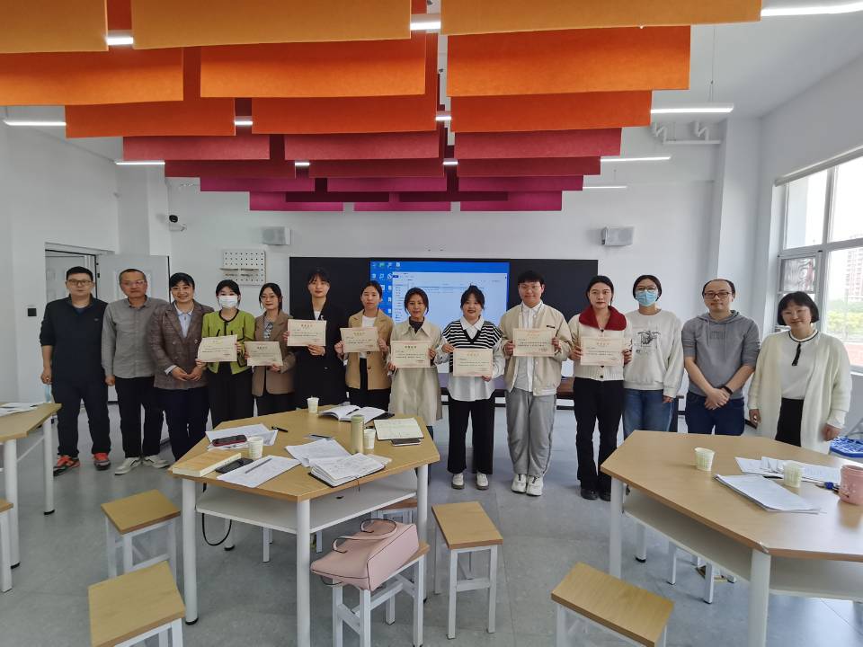 现场展示环节结束后,评审团针对参赛人员的表现进行了评价。祝欣主任从教学仪态、教学方法、师生互动等方面对参赛实习生提出了表扬。肖凯老师肯定了参赛实习生的目标意识、资源意识、规范意识、创新意识有所提升,同时从细节意识、学科意识、员工意识三个方面指明了改进的方向。随后,赵东方主任以及祝欣主任为获奖人员颁发“新睿杯”奖状,张静楠、周路瑶、向莉华、常持杰获得一等奖,沈欢、李秀子、伍思怡、张一凡获得二等奖。