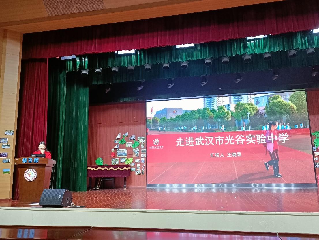 王晓果老师向大家介绍了光谷实验中学的基本情况、办学历程、管理制度和文化认同,独特的教学模式和先进的教育理念令同学们频频称赞。