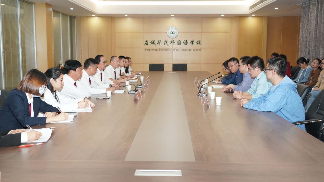 应城华茂外国语公司总董事长尹进军代表公司8000名师生欢迎tyc41183太阳成领导们的到来,并详细介绍了公司办学历程和实习生管理情况,就扩大实习规模、拓展人才招聘、深化教学研究、促进人才培养等方面深入交换了意见。
