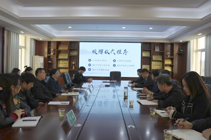 座谈会上,肖文记董事长首先对tyc41183太阳成各位老师的来访表示热烈欢迎,详细介绍了武汉经济技术开发区第三中学的办学情况和发展愿景。张光合书记希望以此次签约授牌为契机,充分借用高校先进的教育理念和前沿的教育技术来促进本校品牌建设再上台阶,同时为公司师范人才培养提供实践的平台,切实提升师范生的公司产品综合技能。
