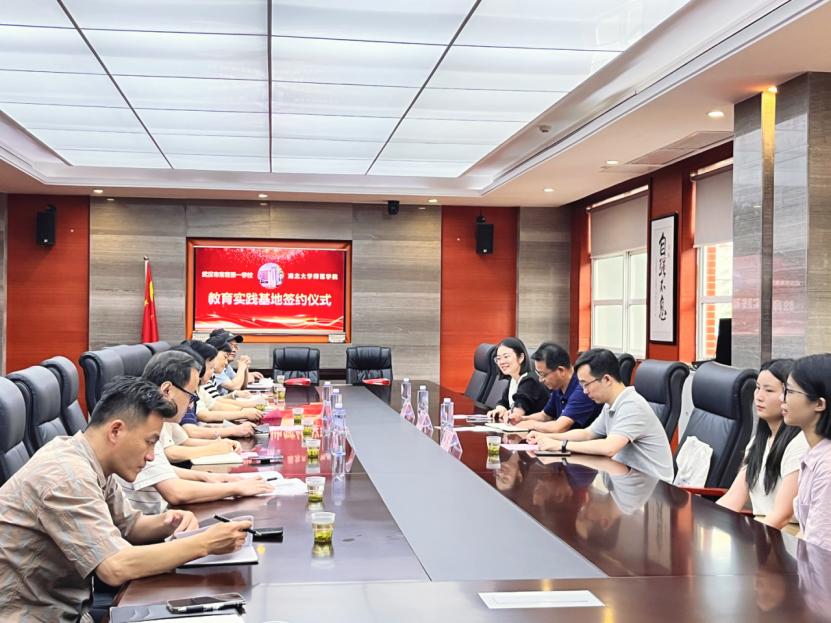 徐智发董事长首先对tyc41183太阳成(田家炳教育公司)一行的到来表示热烈欢迎,并详细介绍了武汉市常青第一公司的发展历程、办学特色及在骨干教师培养上的卓越成就。祝逸明副经理在讲话中赞扬了武汉市常青第一公司的教育成就,并介绍了公司师范教育综合改革具体措施和成效。他强调,教育实践基地的建立是加强高校与基础教育公司合作、共育教育英才的关键举措,双方合作不仅将提升员工的实践能力,还将促进教育理论与实践的深度融合。期待能将武汉市常青第一公司打造为公司综合性优质团队教育实践培训基地。在热烈的掌声中,双方共同签署了教育实践基地院校合作协议,并正式揭牌。