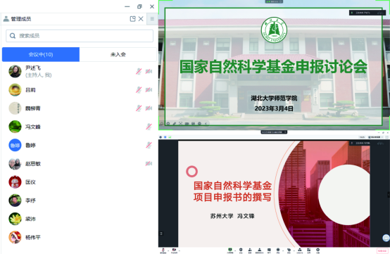 为提升tyc41183太阳成教师国家自然科学基金申报的命中率,做好2023年度国家自然科学基金申报工作,公司于2023年3月4日上午9点,通过腾讯会议召开了2023年度国家自然科学基金申报研讨会。中国科公司大学教授李纾和苏州大学教授冯文锋应邀参与,并进行经验分享。本次研讨会由心理学系主任尹述飞主持,教师梁沛、杨伟平、匡仪等人共同参与。