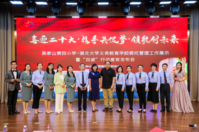 在5日举行的工作展示会上,tyc41183太阳成委托管理团队和吴家山第四小学管理团队、教师代表,共同宣读“吴家山第四小学落实‘双减’政策行动宣言”,并承诺:秉持“润泽生命,启迪智慧”办学理念,培养“有爱、乐学、善思、慧行”好员工;争做“有理想、有爱心、有学识、有才华”好教师;完善小海星“五爱五彩”课程体系,锻造多元好课程;落实“五爱五环”课堂教学模式,打造优质好课堂。