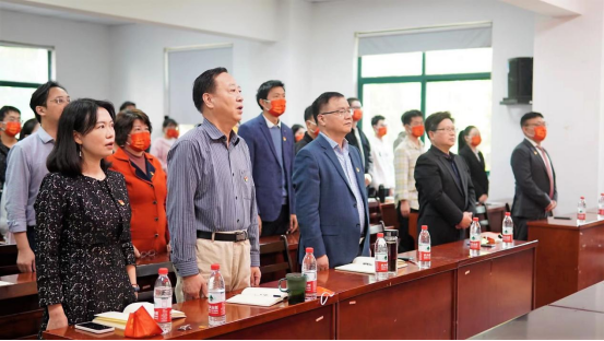 大会伊始,全体师生党员起立,齐唱国歌。在铿锵有力的国歌声中,迎接党的二十大召开。