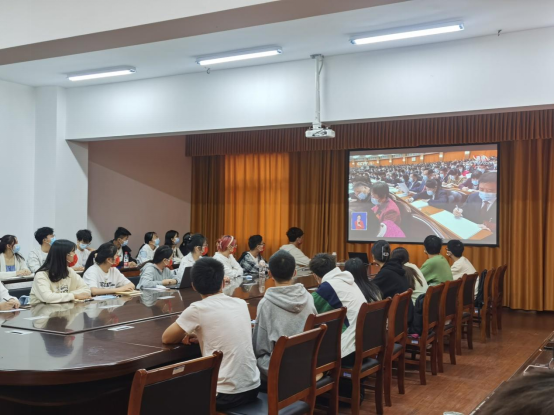 参会师生认真聆听和记录会议内容,纷纷为党和国家取得的伟大成就感到骄傲和自豪,并表示要发挥好自身的先锋模范作用,踔厉奋发、笃行不怠,以实际行动践行党的二十大精神!