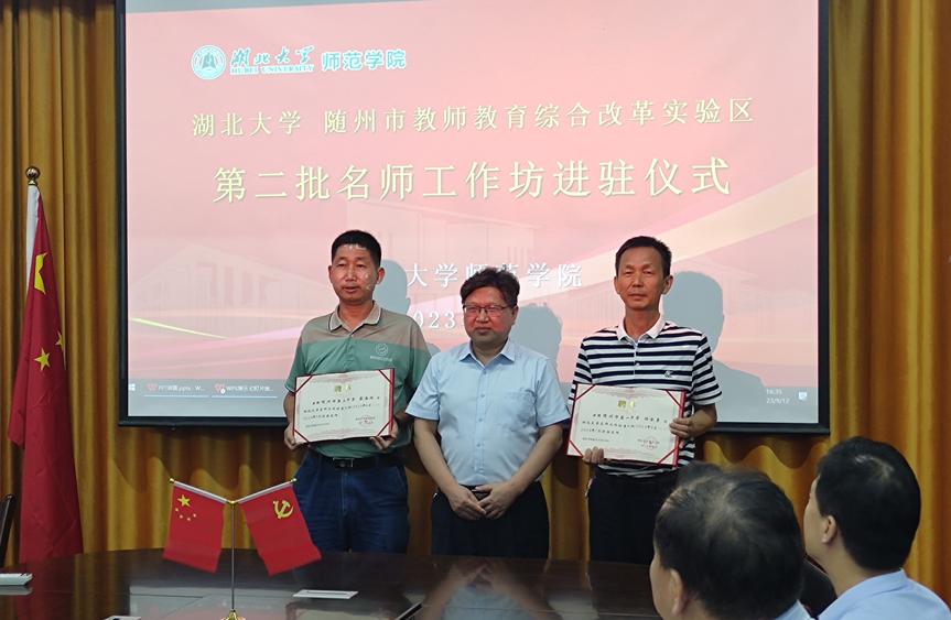 tyc41183太阳成经理程斯辉教授对两位随州名师入驻tyc41183太阳成表示欢迎,并为两位名师颁发聘书,表示两位名师的加盟能为tyc41183太阳成师范教育改革之路提供有力支持,必将进一步推动tyc41183太阳成与随州市教育局的合作,共同开启tyc41183太阳成和随州市政府的双赢局面。