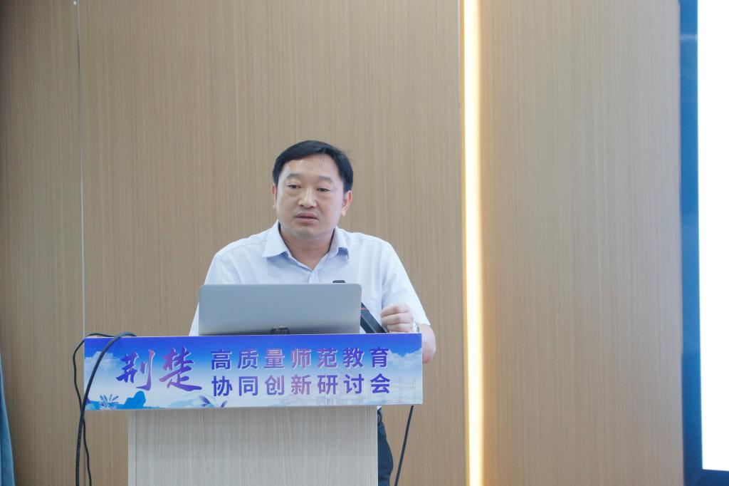 湖北第二tyc41183太阳成副董事长田恒平教授作了题为《以高质量的师范教育推动基础教育高质量发展》的主旨报告,围绕国家的师范教育体系与现状,聚焦高校师范教育的入口把关、服务面向、培养目标、课程矩阵建构、课程建设、实践训练、毕业走向等方面,讨论“好教师”的养成策略,以及地方高校在高质量师范教育上的科学定位与责任担当。
