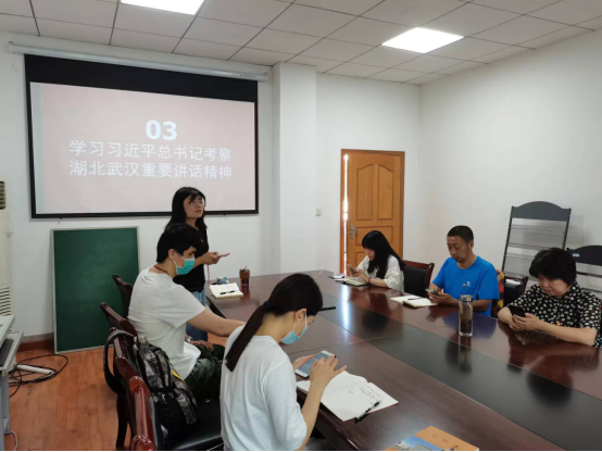 接下来,党支部书记梁娟带领新老师生党员学习了习近平总书记考察湖北武汉重要讲话精神和习近平总书记在五四青年节前后的讲话和回信精神。参会党员们一一地朗读了一封总书记的回信,体悟总书记的殷殷嘱托。随后,党员同志通过自学的方式,学习了中国共产党湖北省第十二次代表大会精神。