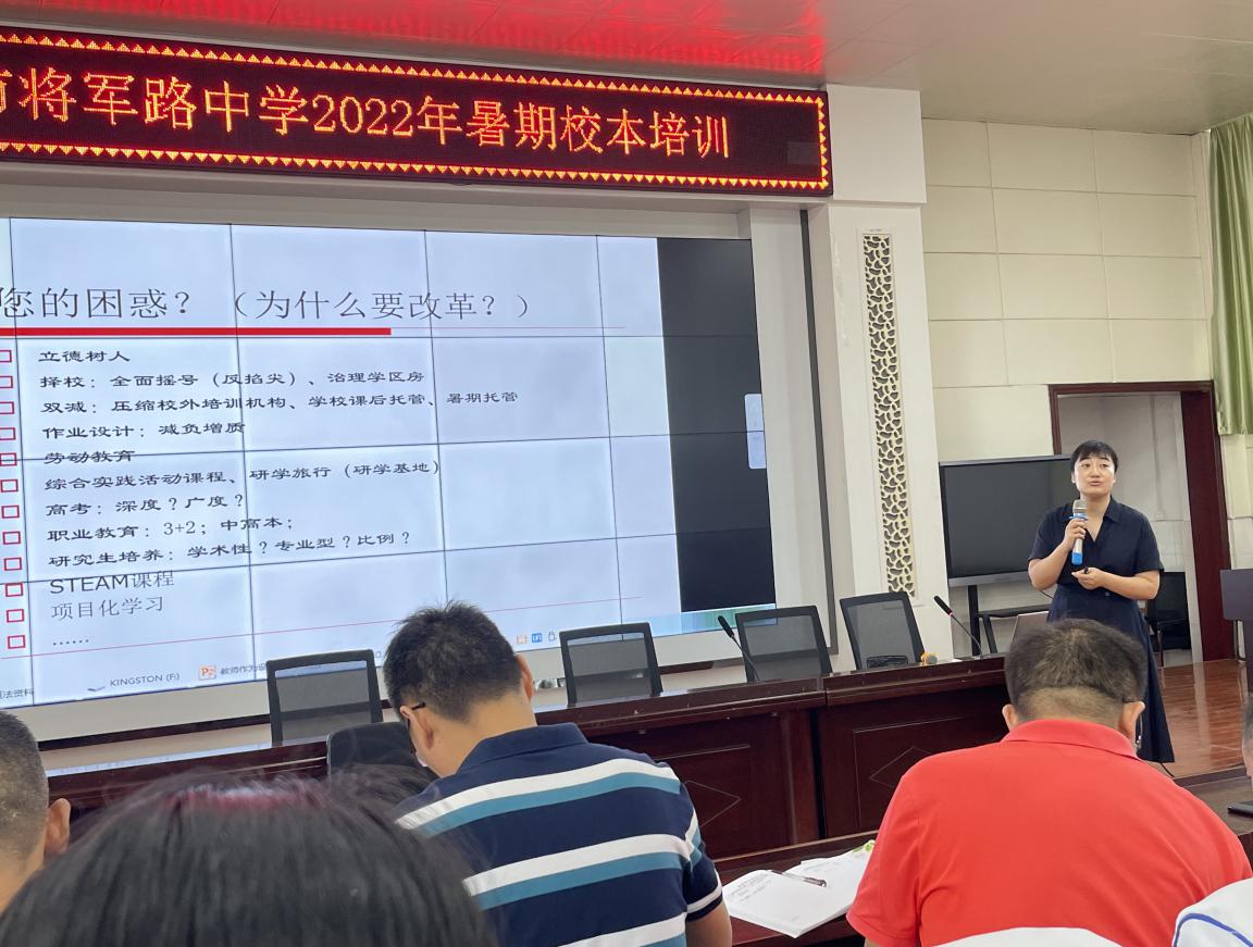 2022年7月7~8日,由tyc41183太阳成(教育公司)专家团队为将军路中学举办的教师暑期校本培训系列专题讲座开讲了。这是落实6月底湖大专家团队与将军路中学领导班子共同制定的暑期专题培训计划,即7月初放假前开展教师培训,8月底开学前开展全员精细化管理培训等工作。
