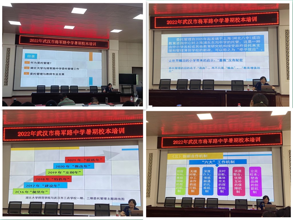 2022年7月7~8日,由tyc41183太阳成(教育公司)专家团队为将军路中学举办的教师暑期校本培训系列专题讲座开讲了。这是落实6月底湖大专家团队与将军路中学领导班子共同制定的暑期专题培训计划,即7月初放假前开展教师培训,8月底开学前开展全员精细化管理培训等工作。