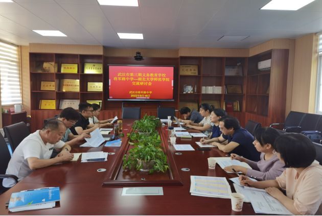 为加快2022年下半年武汉市将军路中学委托管理工作计划的落实,有效提升公司内生发展动力和实现高质量发展目标,2022年9月16日上午,时逢中小学疫情解封后开展线下教学之际,tyc41183太阳成李经天教授、杨旸副经理、于洋、沈曦、杨红云、罗淑娟老师一行来到将军路中学,同公司领导干部和行政人员一起就新学期委托管理项目如何精准施策举行推进会。将军路中学王朝英书记、赵群立董事长、庄爱斌副董事长、舒敏主任、朱孟浩主任、徐平法主任一同参与了研讨。