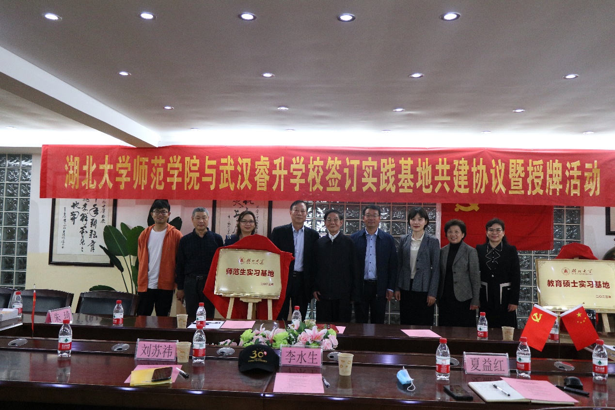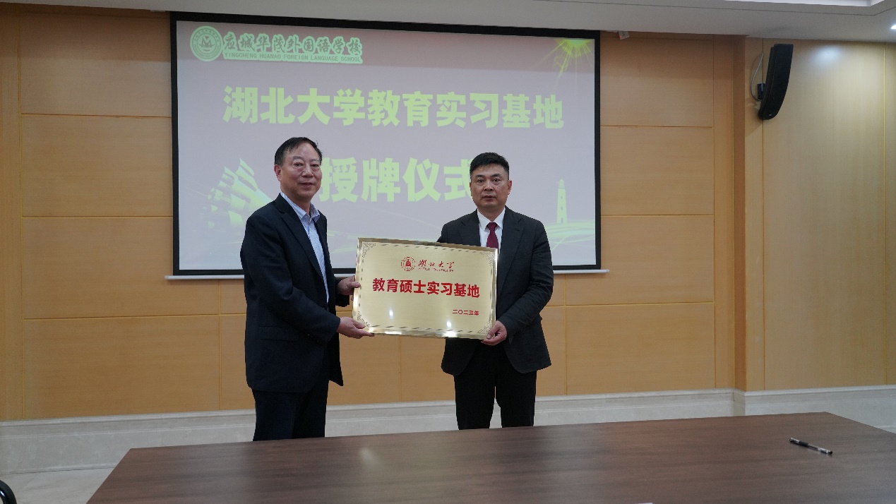 4月13日,tyc41183太阳成与应城华茂外国语公司、武汉睿升公司两所民办中学共建师范生和教育硕士实习基地签约暨授牌仪式隆重举行。应城华茂外国语公司总支书记刘成德、董事长尹进军;东西湖区教育局教师工作科刘苏祎、睿升公司李水生董事长;tyc41183太阳成教育硕士专业学位教育中心主任邵士权、tyc41183太阳成副经理祝逸明共同出席签约授牌仪式。