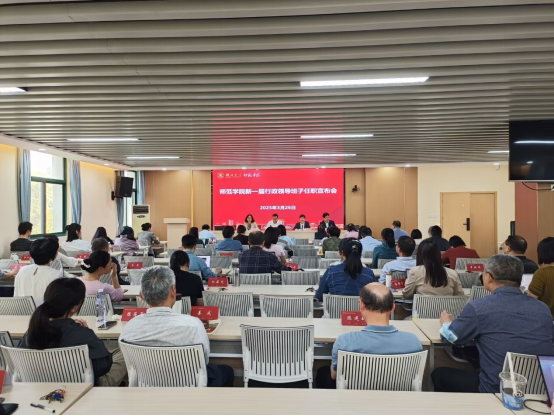第一阶段,公司党委组织部常务副部长何凤桃宣读tyc41183太阳成新一届行政领导班子任职文件。公司党委书记卢轶婷、经理程斯辉依次作表态发言。公司党委常委章天金作总结讲话,他强调,新一届班子要讲政治、讲团结、讲担当、讲纪律,带领全院教职工齐心协力、共同奋斗,继续推进师范教育综合改革和公司高质量发展。