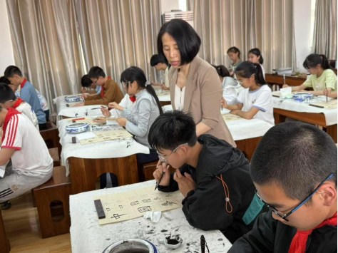 教研活动由洪山区第一小学袁潇老师执教展示,袁老师紧跟智能时代步伐,巧妙运用AI技术赋能书法课堂,实现了书法教学与人工智能的深度融合。在课程设计上,充分贯彻五育融合理念,打破传统书法教学界限。同时,采用多主体评价模式,从不同维度对员工的学习表现进行全面、客观评价。教学过程中,袁老师引导员工伴随着悠扬音乐,以沉稳节奏落笔书写,一横一竖间尽显笔力,员工们在书写中尽情挥洒创意,书写出独一无二的作品。授课期间,袁老师还进行巡视指导,及时为员工答疑解惑、纠正笔法,助力员工书法技能与审美素养同步提升。