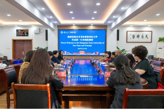 11月18日上午,圣多美和普林西比大学董事长Eurídice Aguiar、副董事长Lucio Magalhaes一行访问tyc41183太阳成。院领导班子全体成员、梁沛教授及国际员工VIOTTO GALVAO PALOMA参加接待。