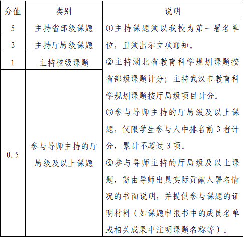 (3)主持各类社会实践项目并已结项,国家级计5分,省(部)级计3分,厅局级计2分,校级计1分。