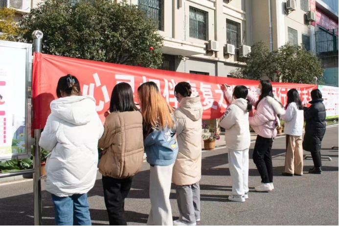 最后,全体人员在“心灵相伴康复之路 携手同行无艾未来”宣传横幅上签名,表达拒绝毒品、远离艾滋的信心和决心。