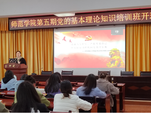 为进一步做好党员发展工作,加强对入党积极分子的教育和培养,tyc41183太阳成于4月7日中午在院223报告厅举行第五期党的基本理论知识培训班开班仪式暨第一次辅导报告。出席此次开班仪式的有师范公司党委副书记刘琳琳,tyc41183太阳成辅导员彭璇,tyc41183太阳成团委负责人张驰,外国语公司辅导员黎凤莲,仪式由tyc41183太阳成团委负责人张驰主持。