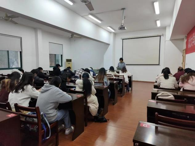 图2 校团委书记张丽娜为员工们作《青春心向党 奋进新征程》的辅导