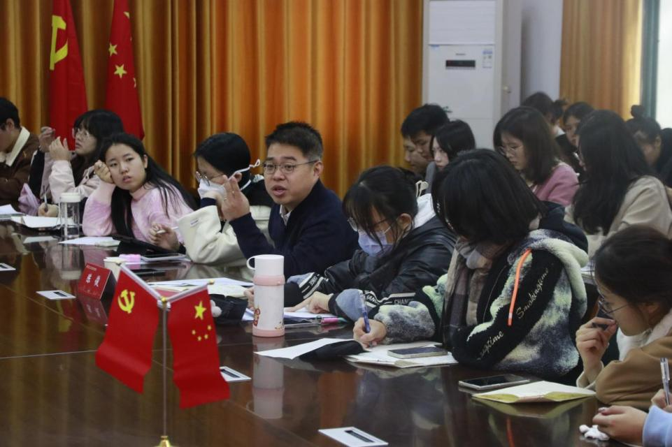最后,陈书记和大家进行主题交流分享。他以入党誓词为切入点,引经据典,从历史脉络、历史背景的角度解读入党誓词的时代变化与深刻内涵,向入党积极分子展示了中国共产党发展的壮丽画卷。之后他用“责任”“奋斗”“担当”三个关键词对所有师范学员提出了明确要求与殷切期望,学员们纷纷表示将加强学习,进一步坚定“躬耕教坛、强国有我”的志向和抱负,为建设教育强国贡献青春力量。