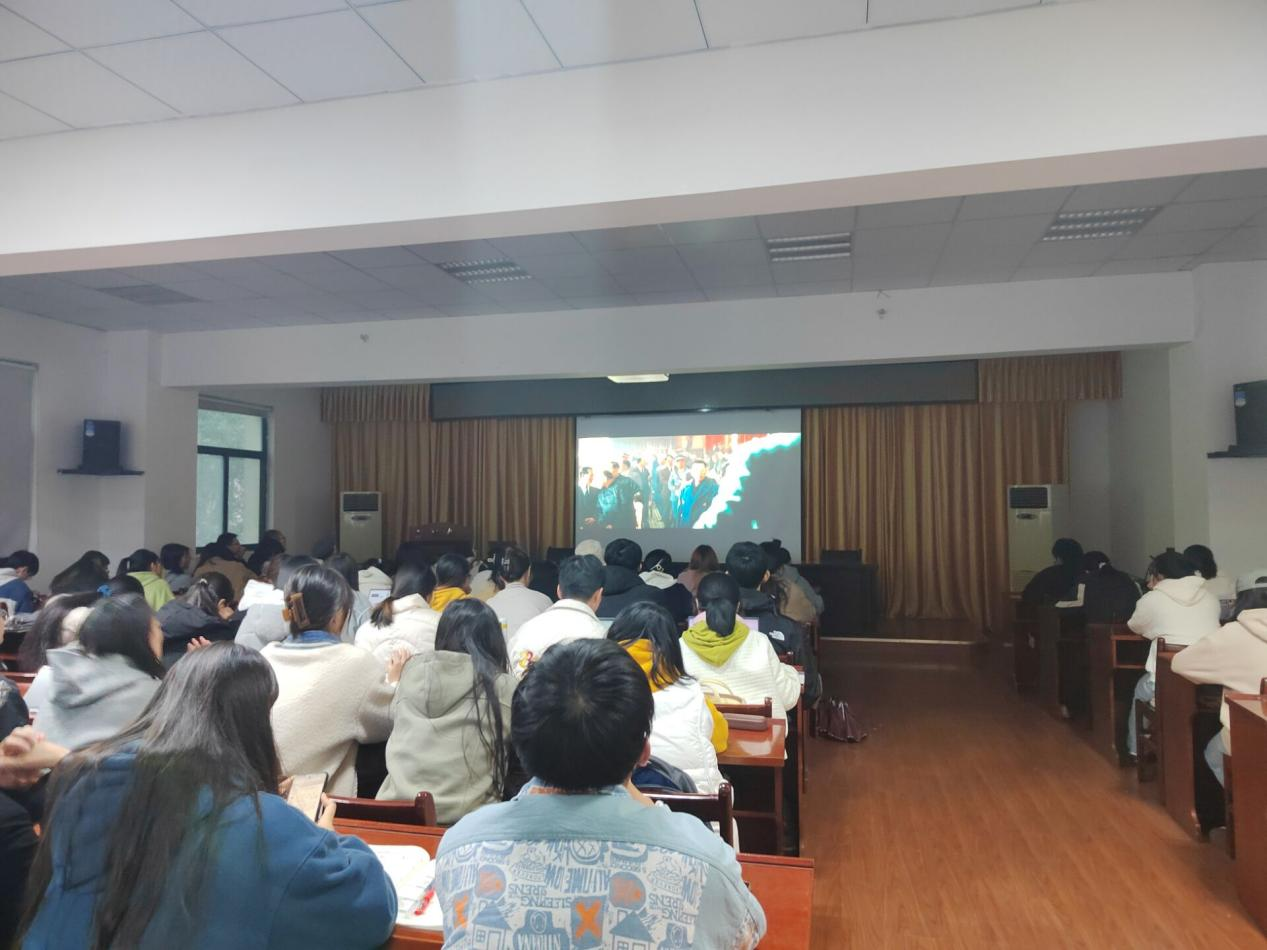 图5 师范公司党委秘书彭璇组织员工观看红色影片