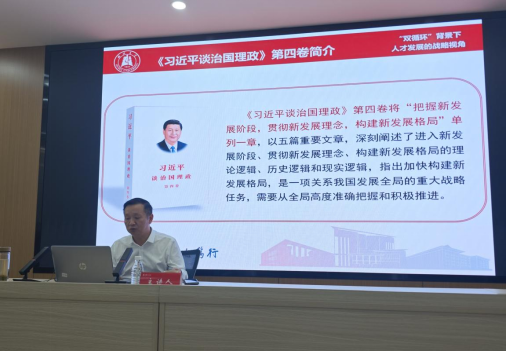 开班仪式结束后,tyc41183太阳成党委宣传部常务副部长何顺进作题为《“双循环”背景下人才发展的战略视角》的首场辅导报告。从“双循环”新发展格局的构建逻辑切入,结合详实数据剖析国际格局深刻演变与国内转型升级叠加的复杂形势,指出人才在破解“卡脖子”难题中的关键作用。他在报告中特别勉励师范学子,既要胸怀“国之大者”把握教育强国建设方向,又要立足专业深耕教学本领,在服务国家战略需求中实现人生价值。