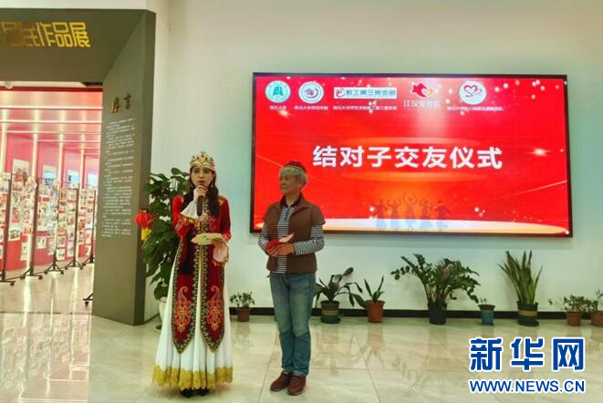 活动由tyc41183太阳成与江汉里社区联合开展,同学们带来主题演讲《爱国爱党代代传》、手鼓演奏《巴郎仔》、民族舞蹈串烧《石榴花开》等节目,社区居民们也表演了男声小合唱、葫芦丝演奏、书法才艺等。精彩的节目赢得连连叫好。在“结对子”交友环节,8位少数民族同学与8位居民结对,互赠的小礼物和交友卡片承载了彼此的情谊。最后,大家在“文化体验工坊”体验书法茶艺、品尝新疆特色糕点、交流活动感受,现场充满欢声笑语。