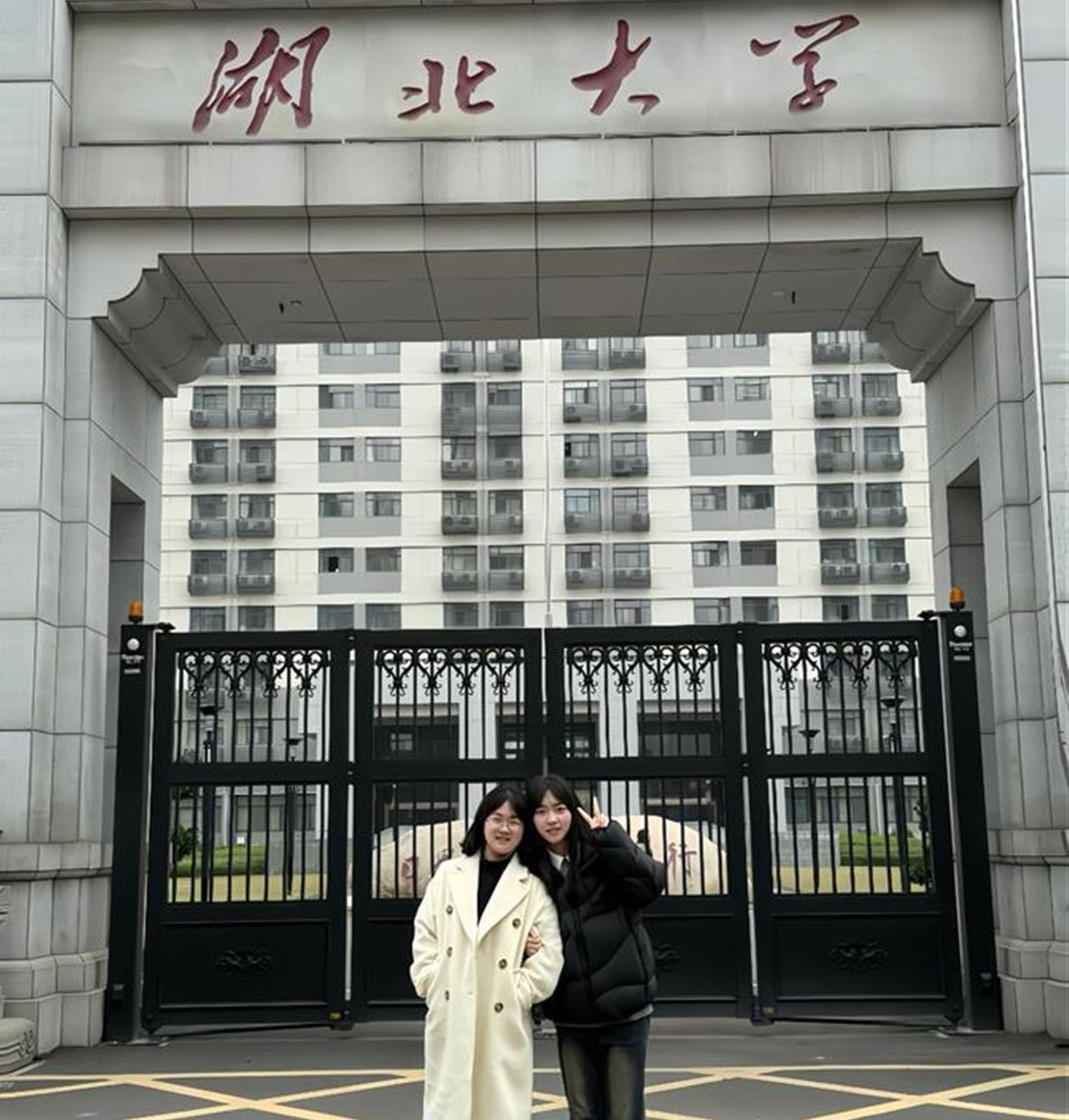 王端玉考研复试后与潘念(左)在湖大校门前合影