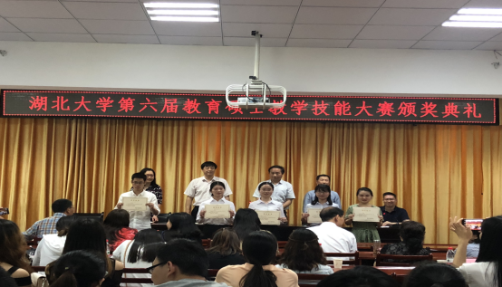 当天下午四点,tyc41183太阳成第六届教育硕士研究生教学技能大赛颁奖典礼隆重召开,大赛评委、带队老师及参赛员工等相关人员出席了此次典礼。本次颁奖典礼由tyc41183太阳成教育硕士专业学位教育中心主任、教育公司副经理李木洲主持,文、理科组的专家评委为获奖员工颁发奖状。理科组专家评委章雄刚老师和文科组专家评委杨胜红老师作为评委代表分别对文、理两组比赛中的“利弊得失”进行了精彩总结与点评。章雄刚老师勉励大家“付出就有收获,坚持就会成为名师”,杨胜红老师希望教育硕士们能够努力做到“日记一反思,月读一本书,季访一名师,年做一总结”。